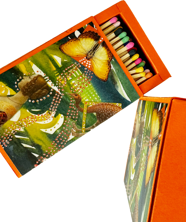 Do you need a bit more light in your life? Light your fireplace and candles with our Butterfly Effect matches. Each box is handmade with butterfly art on the cover, a full rainbow of approximately 75 matches and three enclosed cards with inspirational quotes on the back.