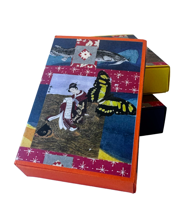 Hand-constructed from G.F. Smith Colorplan cardstock. Each is cut and folded in the Studio, with variations and imperfections. The inserted quote cards are created from reused notebook covers. Plant these cards in a lunchbox, on a windshield, on a pillow.