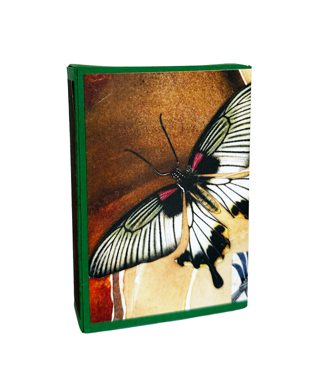 Do you need a bit more light in your life? Light your fireplace and candles with our Butterfly Effect matches. Each box is handmade with butterfly art on the cover, a full rainbow of approximately 75 matches and three enclosed cards with inspirational quotes on the back.