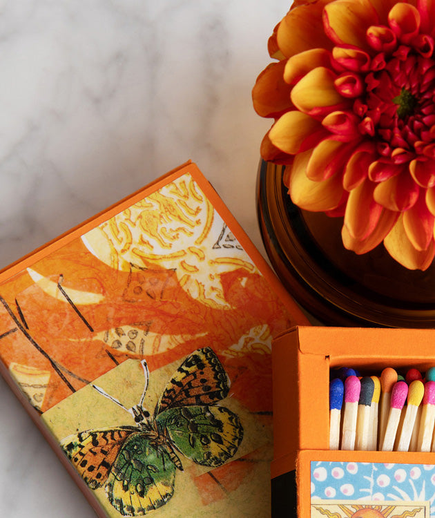 Do you need a bit more light in your life? Light your fireplace and candles with our Butterfly Effect matches. Each box is handmade with butterfly art on the cover, a full rainbow of approximately 75 matches and three enclosed cards with inspirational quotes on the back.
